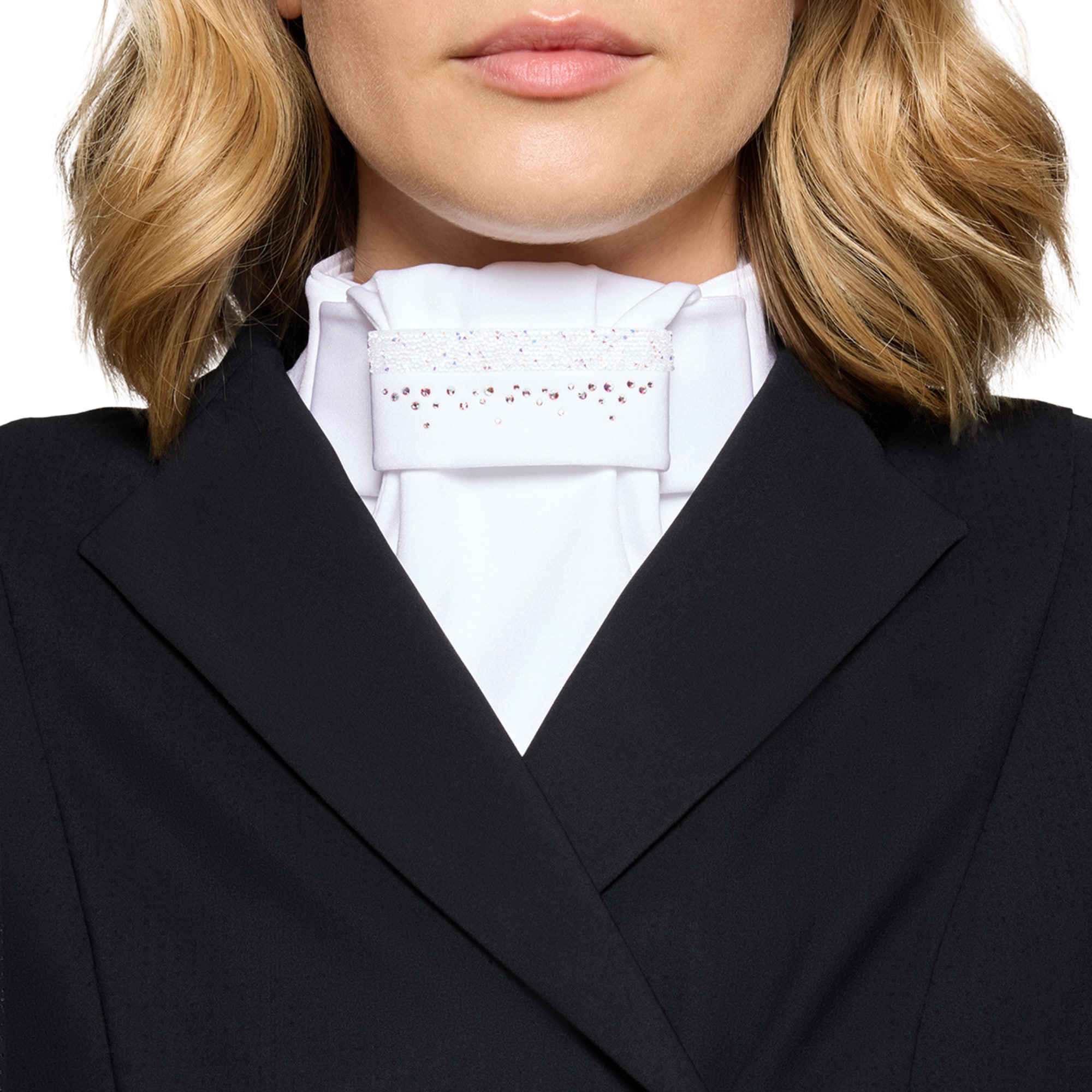 Samshield stock tie with Swarovski Ultra Fine Rock and cascading crystals in Holo, a holographic finish with a subtle colour shifting effect.