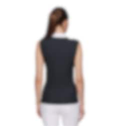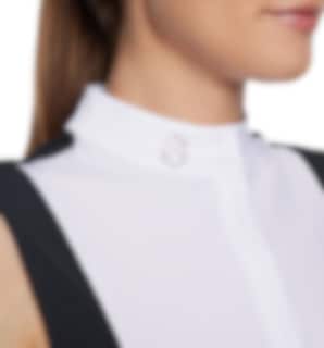 Yasmina is a sleeveless competition top perfect for competitions, or when you want to look extra stylish during training. It is made in a very comfortable material that has high stretch, breathes and is quick drying. At the front there is an invisible zipper, and the collar is in white with a Samshield blazon in Swarovski crystals. The back of the competition shirt is perforated, which breaks off beautifully towards the front.