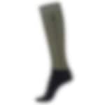 The Cavallo Saliza riding socks in black are both functional and stylish. Featuring a cushioned footbed for extra comfort and an ultra-thin shaft that fits smoothly inside your riding boots without bulging. Adorned with a row of sparkling gunmetal-look crystals along the calf, as well as a Cavallo stirrup in matching crystals on the shaft. Marked R/L for a perfect fit.