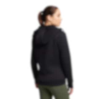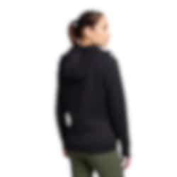 - Black women’s hoodie with zipper, stand-up collar, and hood with drawstrings