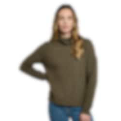 Dubarry Hopkins Knitwear in Dusky Green is a soft cable knit wool blend sweater with a high collar that provides both warmth and timeless style – perfect for everyday wear or at the stables!