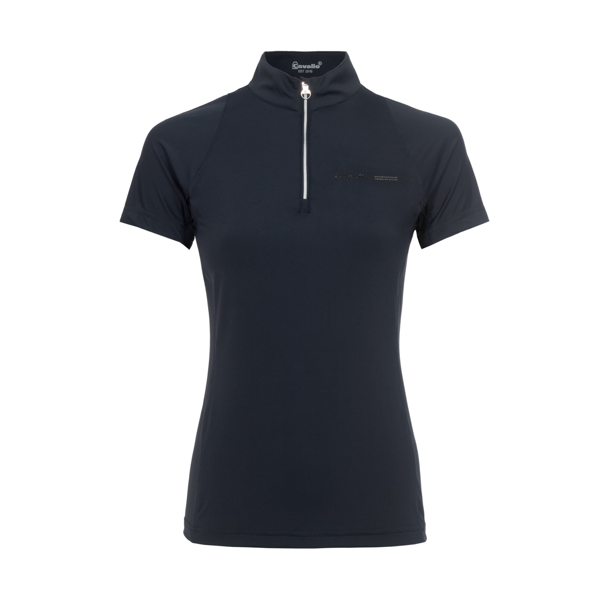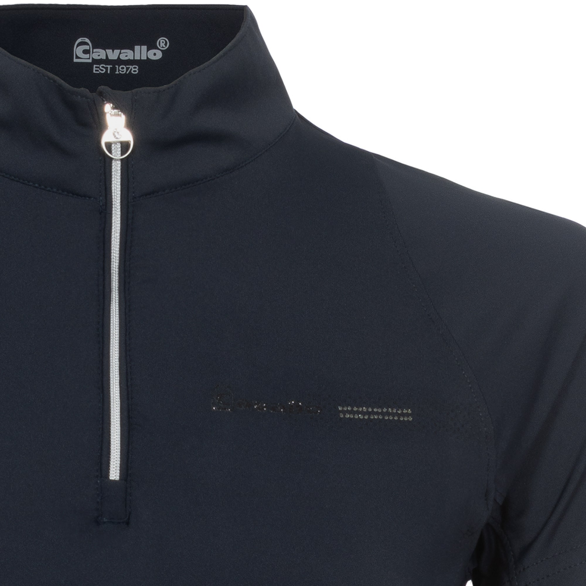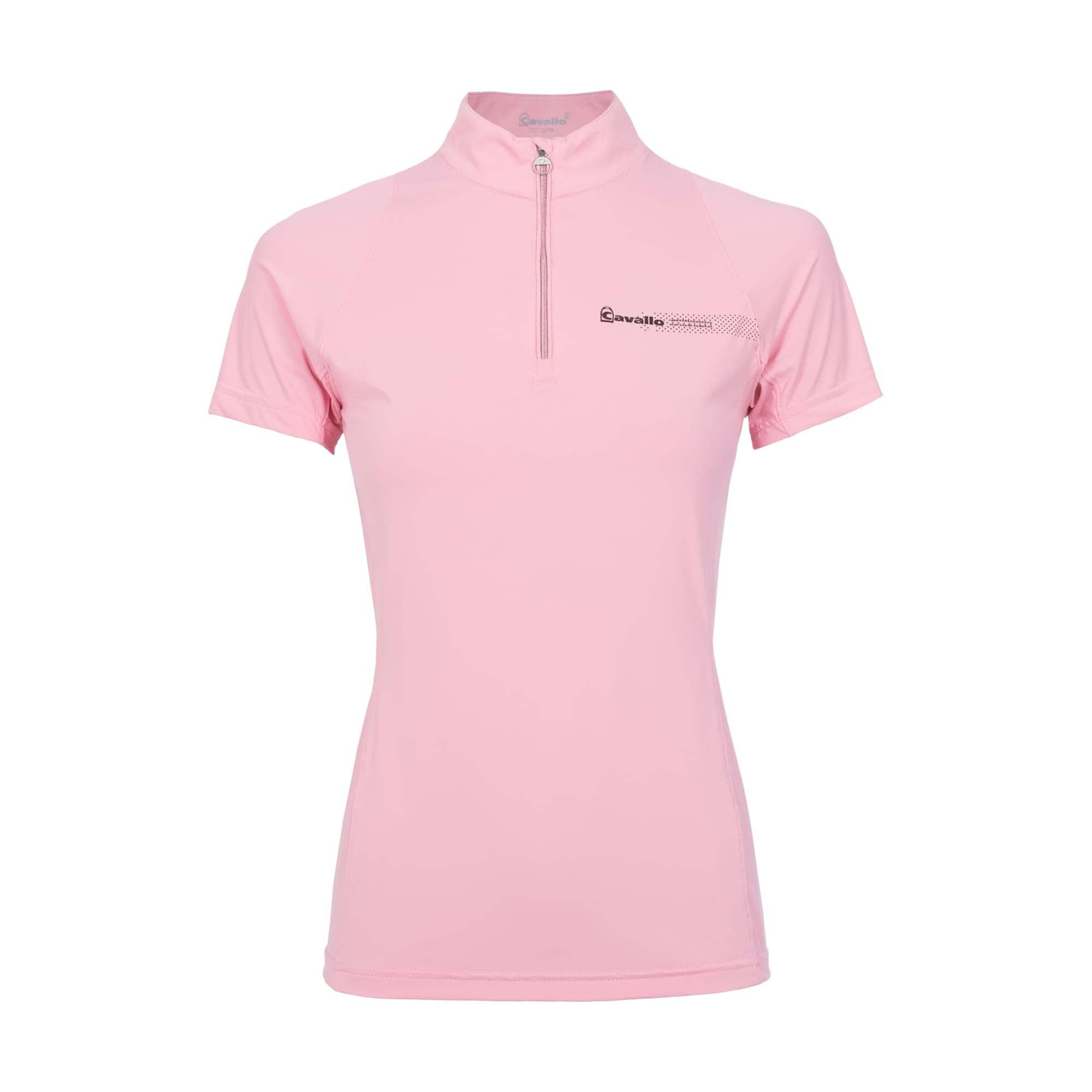 Cavalberri Pike in Powder Pink is an elegant and functional riding polo shirt featuring a close-fitting silhouette and a sleek stand-up collar adorned with decorative crystals.