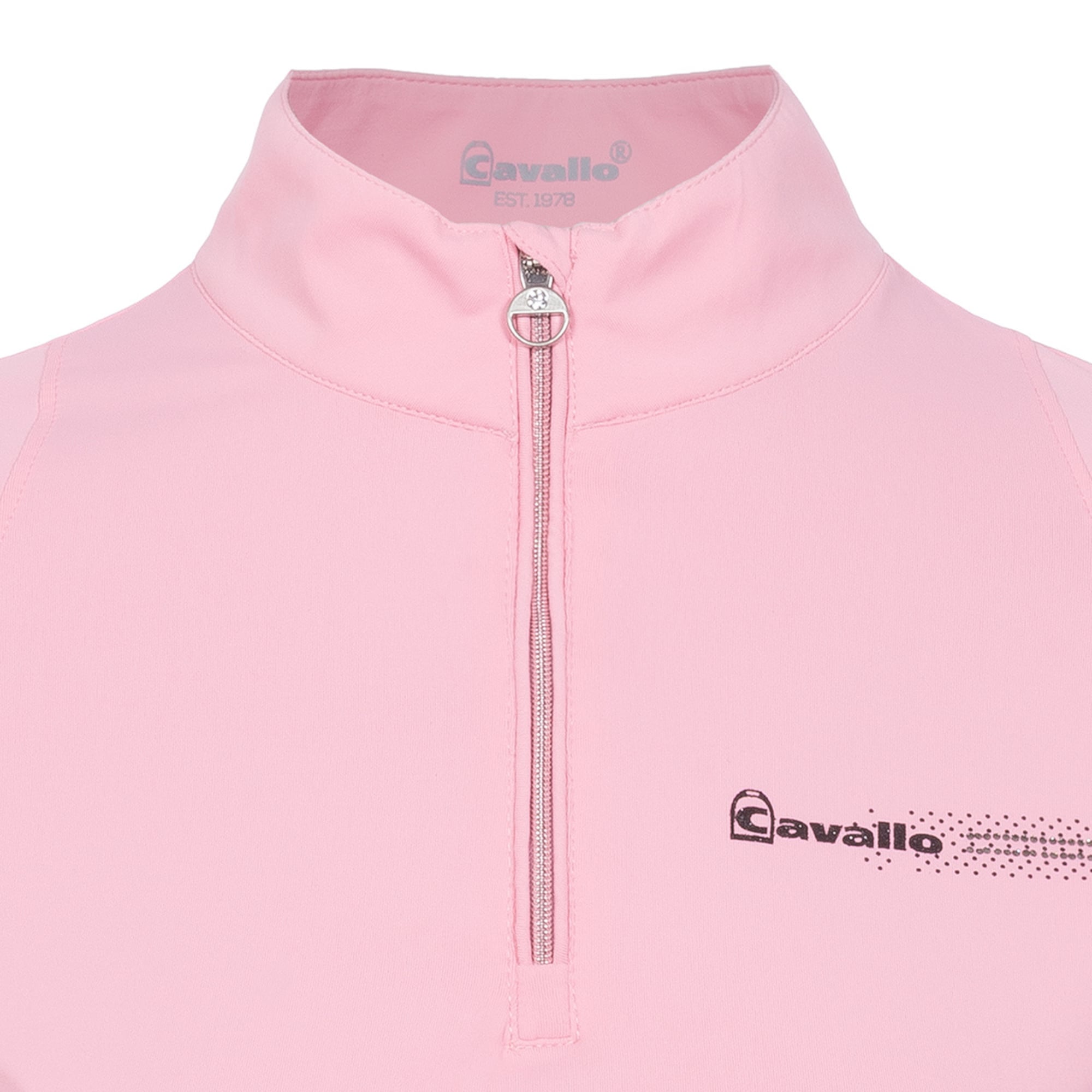 The short front zip is finished with a sparkling crystal pendant, adding a luxurious touch. On the left chest, a glossy black Cavallo print embellished with shimmering crystal stones creates an exclusive look, while the back is decorated with a black stirrup print featuring crystal details.