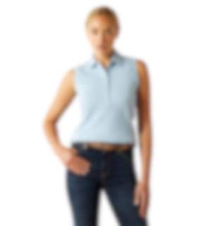 The Ariat Prix 3.0 Sleeveless Polo is crafted from a soft, moisture-wicking fabric that effectively keeps you dry and comfortable throughout your ride.