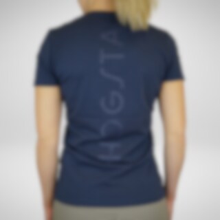 This t-shirt is crafted in a fantasticly comfortable material that works excellent all year round both in the stable and for every day use. The t-shirt has a classy design and a classic navy color that is easy to match. This navy t-shirt features the Hogsta logo on the chest and a vertical Hogsta logo at the back. Both logo prints goes tone in tone with the t-shirt .