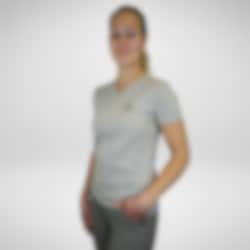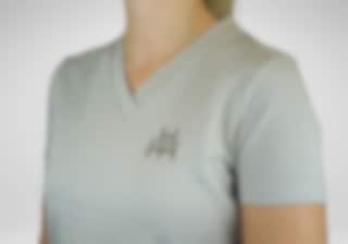 Elegant t-shirt with a v-neck, crafted in a comfortable material and classy design. This t-shirt is sand colored, featuring the Hogsta HHH logo on the chest and a vertical Hogsta logo at the back. The material is a mix of organic cotton and elastane, a mix that forms a very soft fabric that feels comfortable against the body. This t-shirt is ideal for riding and everyday use.