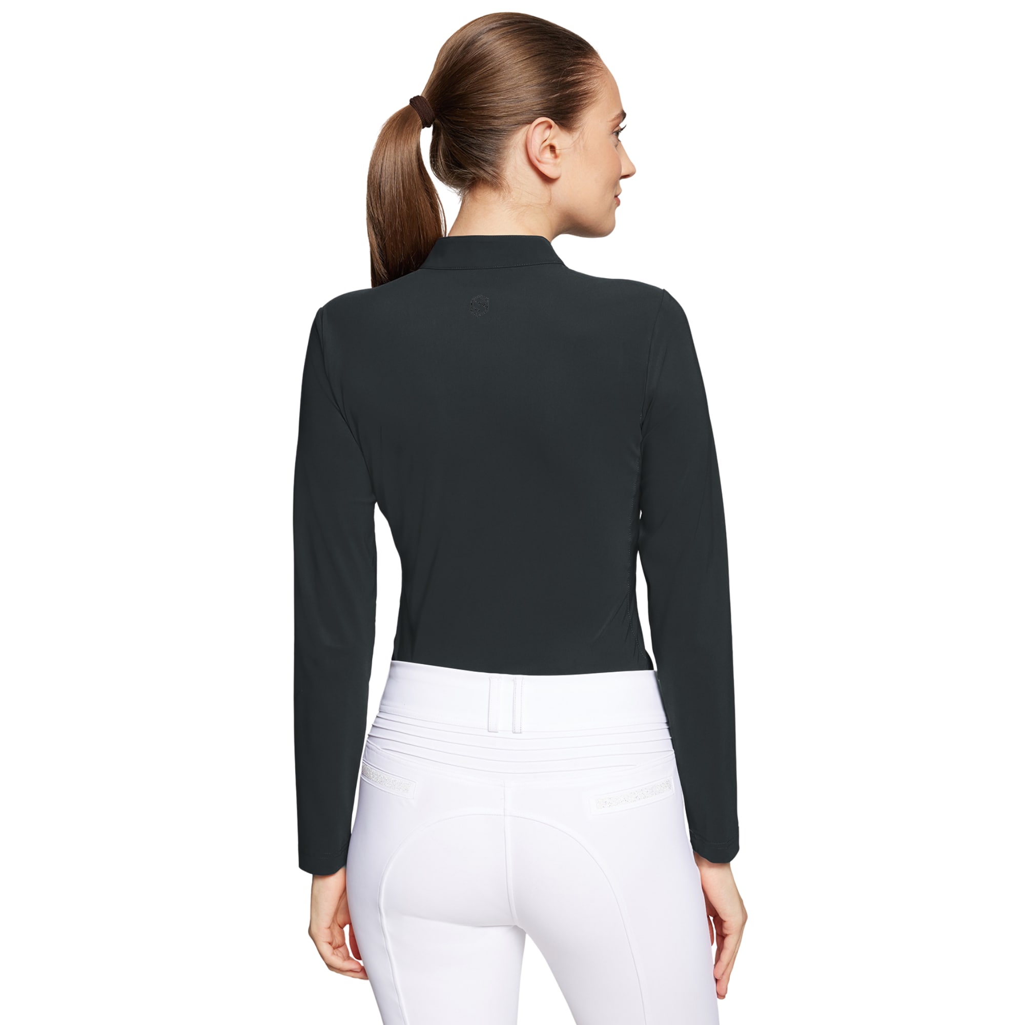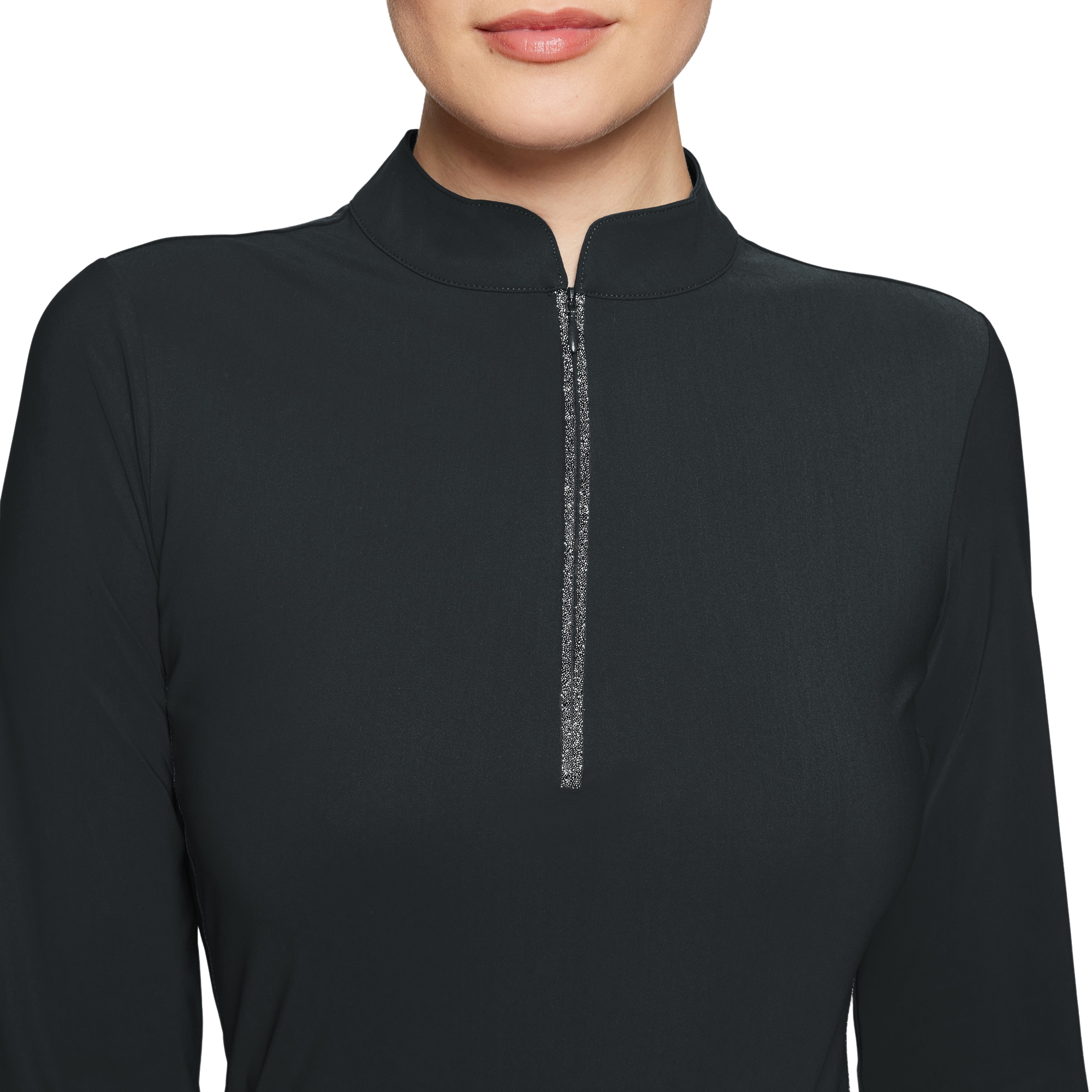 The Brunella Training Top from Samshield in Moonless Night is an elegant long-sleeve riding shirt with a stand-up collar and half-zip closure. Made from breathable, stretchy technical fabric and adorned with flattering Swarovski® details.