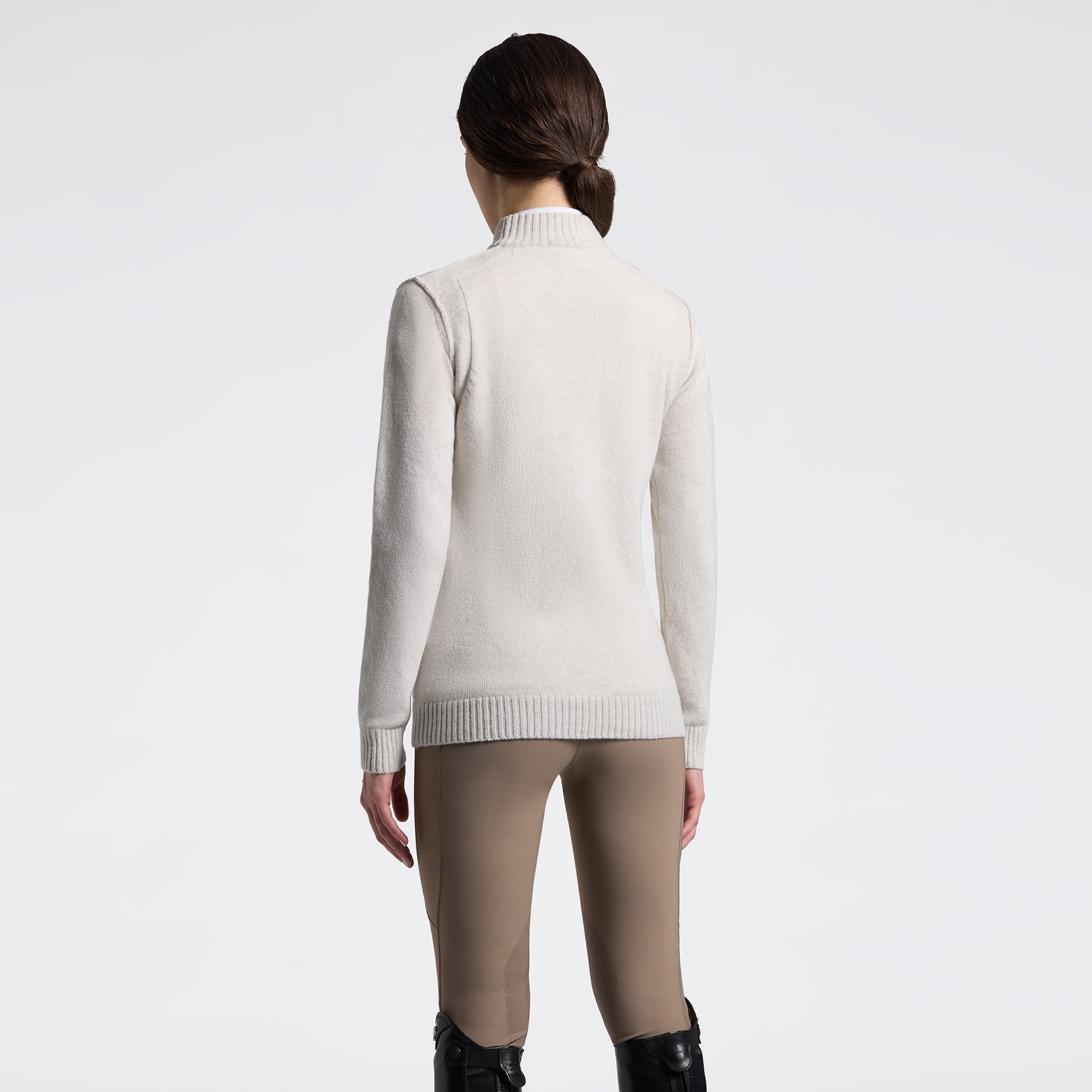 A simple and comfortable sweater in cream, made from soft virgin wool. Suitable for both equestrian activities and everyday wear.