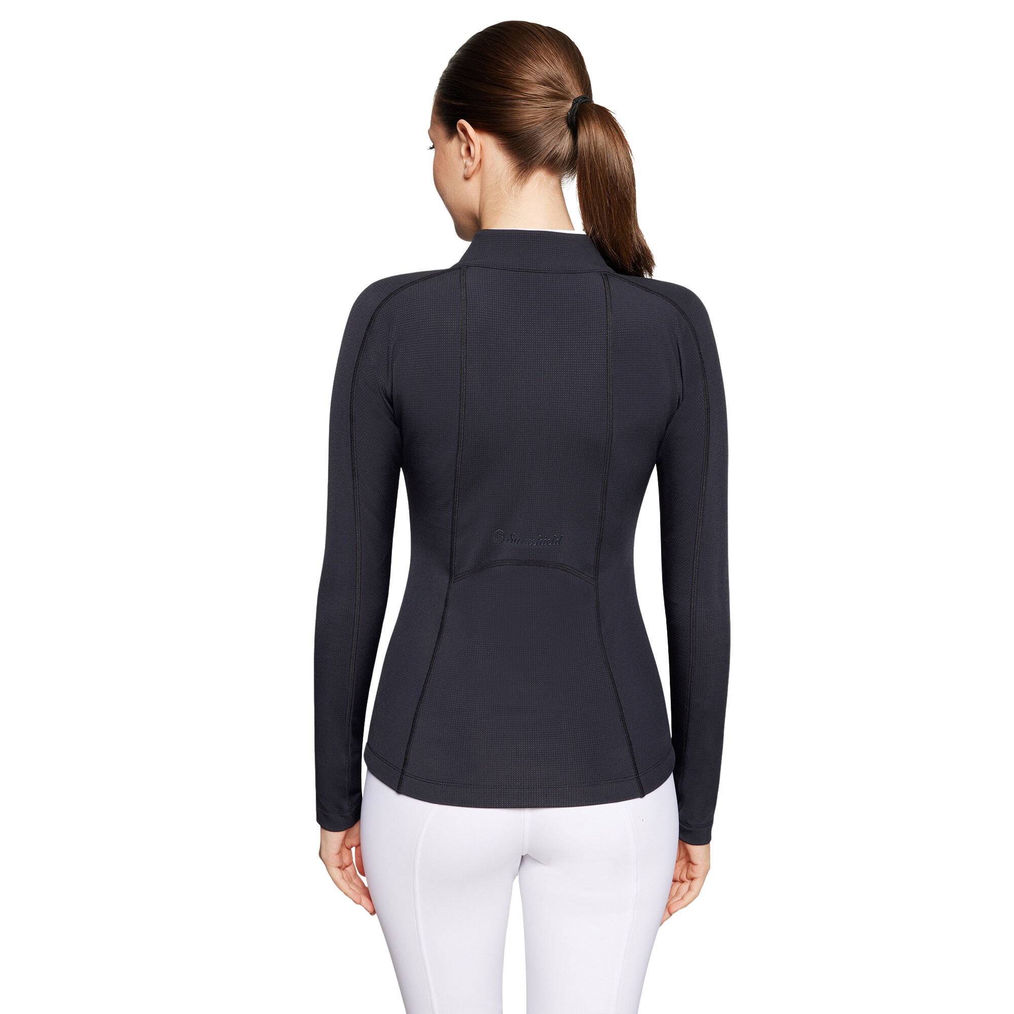 Made from breathable and stretchy fabric, the Evelya Top provides full freedom of movement in the saddle while remaining durable and anti-pilling. The top is easy-care, machine washable, wrinkle-resistant, and offers UPF 50+ sun protection, making it both practical and stylish. It is also eco-responsibly produced.