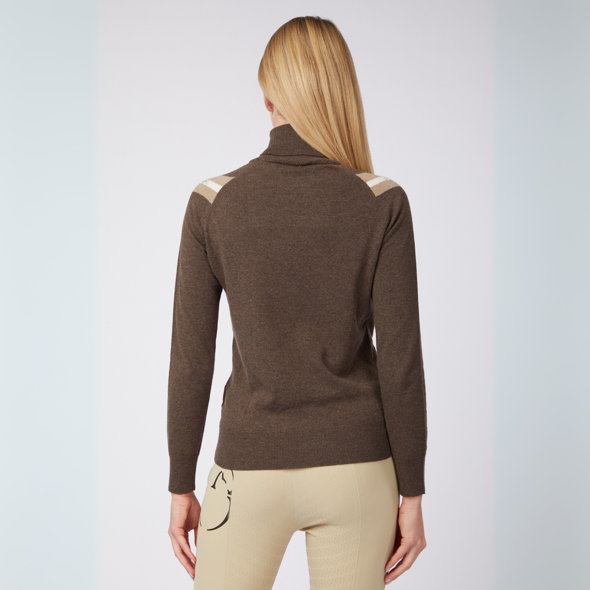 Vestrum Nicosia Knitwear in the color Moro/Sabbia is an exclusive knitted turtleneck featuring a decorative bit motif across the chest in a contrasting shade.
