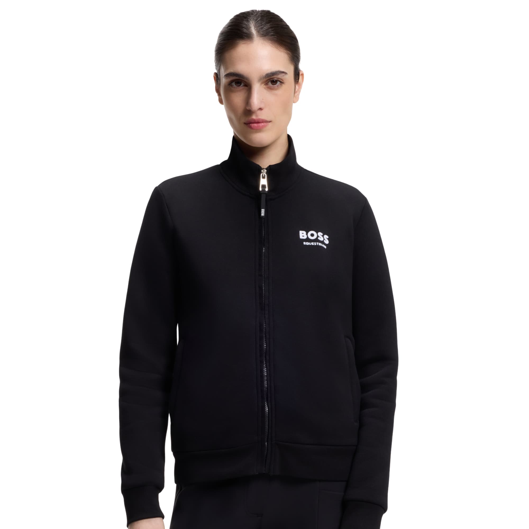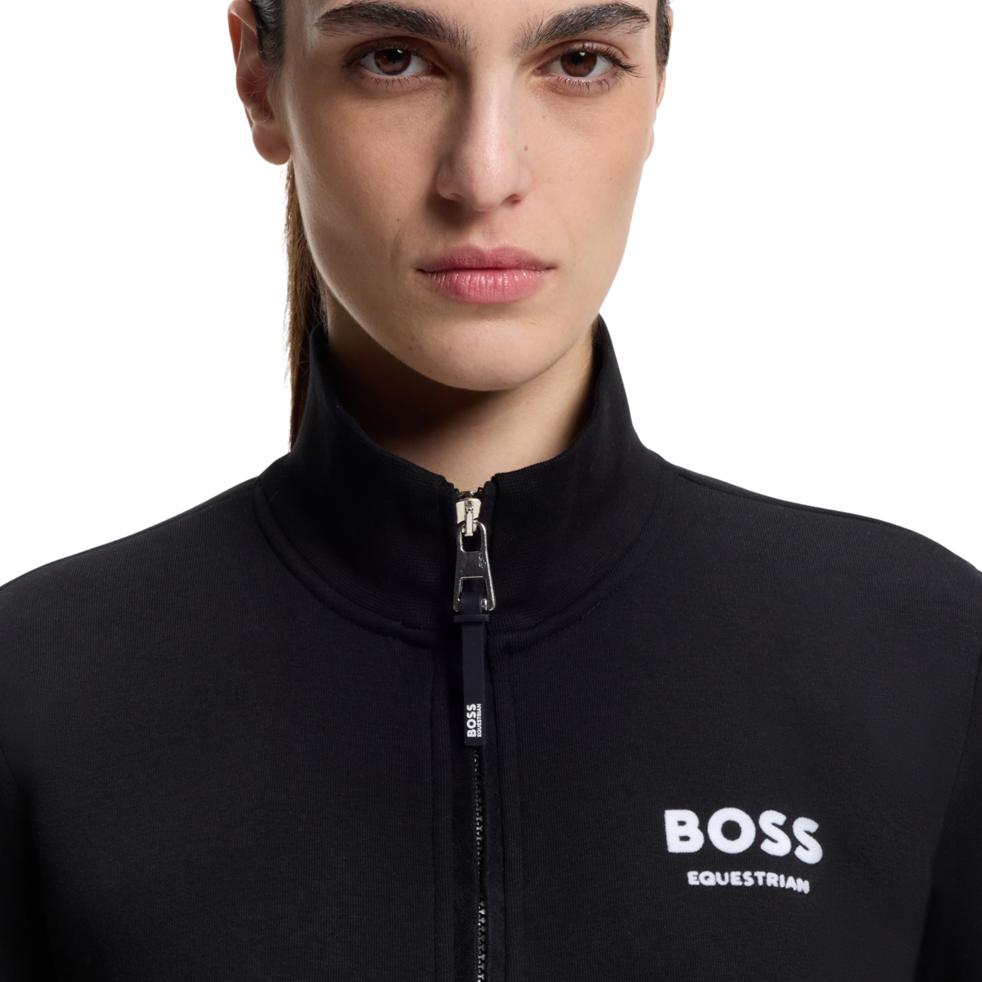 This black sweatshirt is equipped with practical zippered pockets and a silicone puller with a subtle BOSS logo for a refined detail. The chest is adorned with the iconic Boss Equestrian logo, making the garment equally stylish in the stable or for everyday wear.