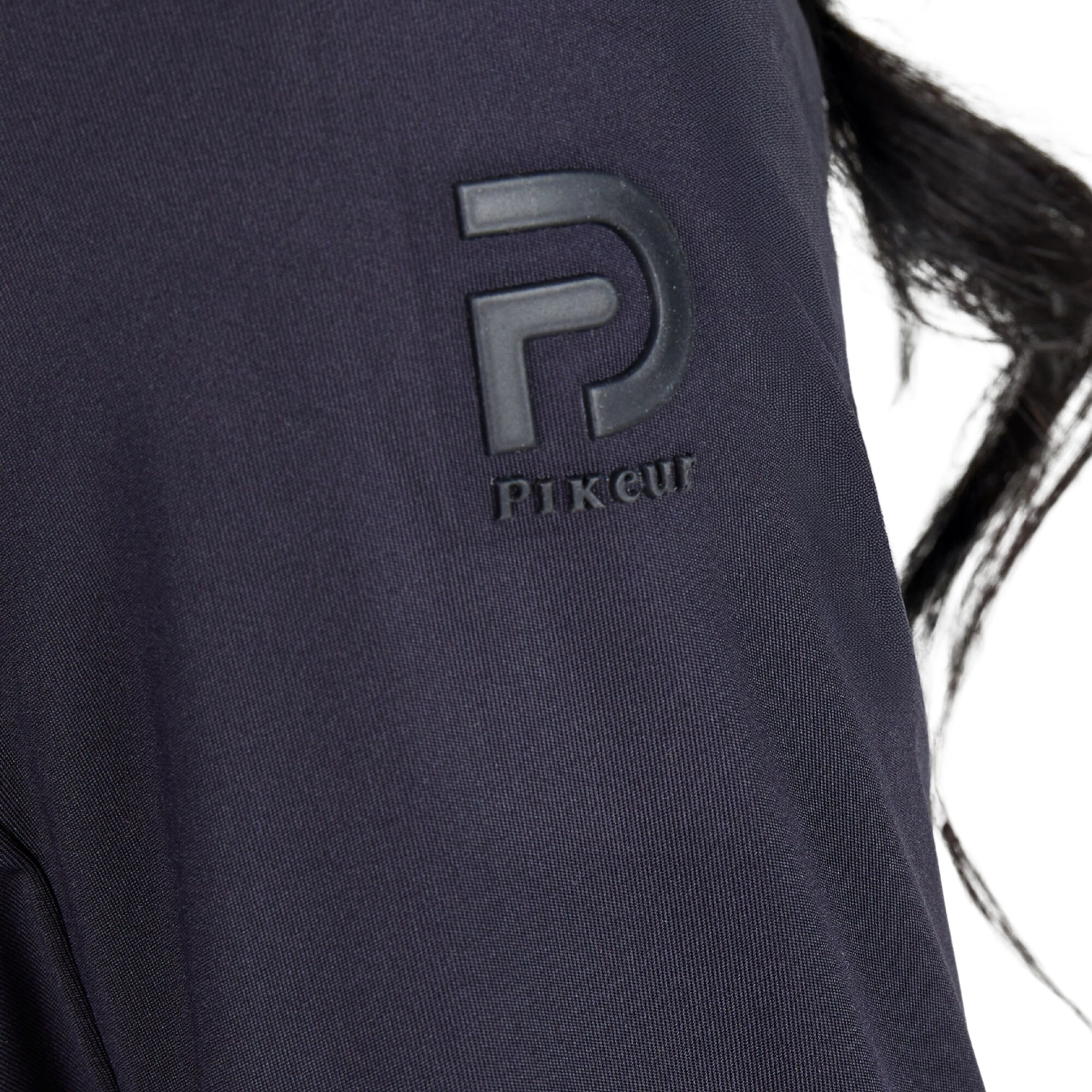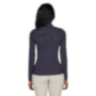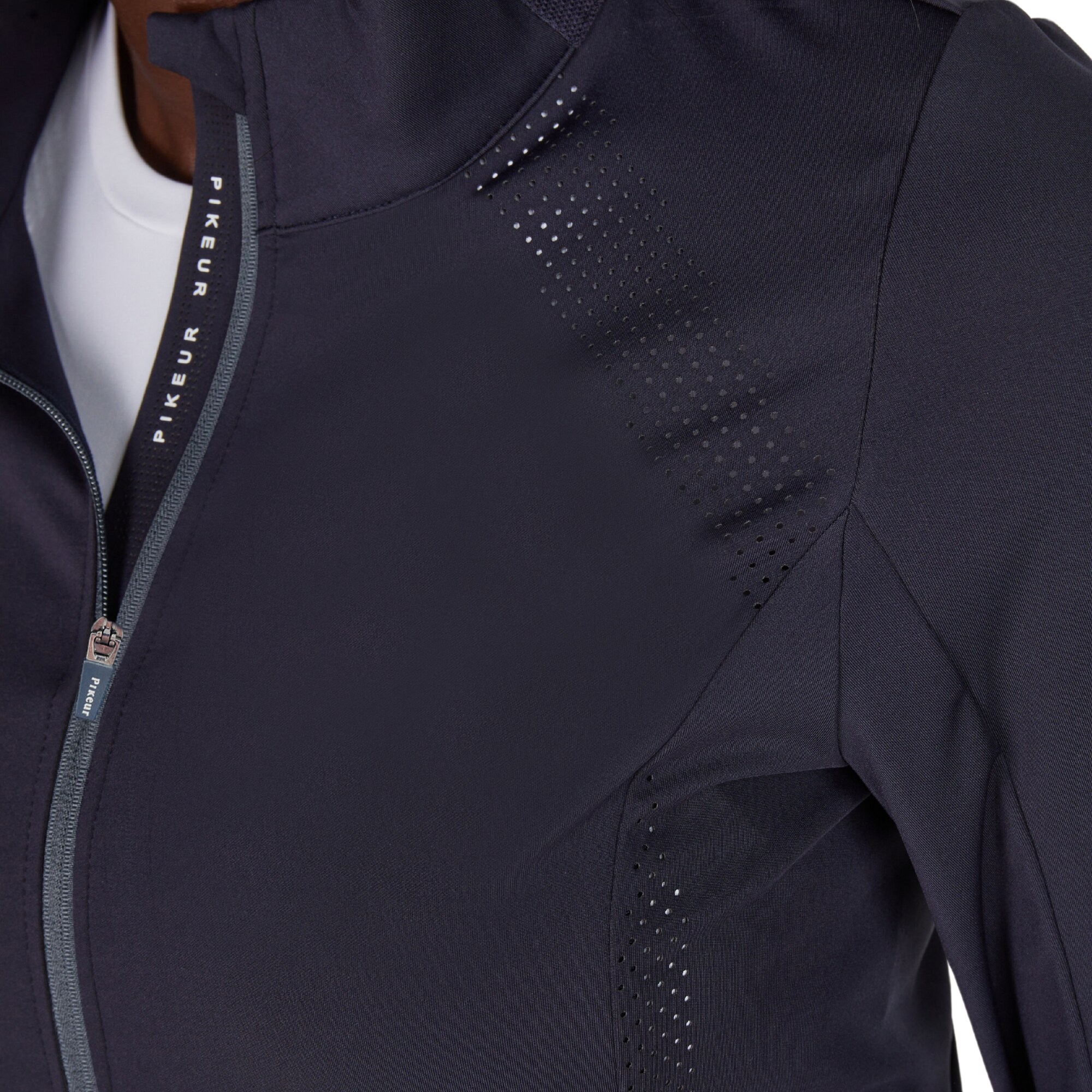 The functional shirt is made from a durable, stretchy and shaping outer material that retains its fit and offers good breathability while being fast drying. The riding shirt features perforated panels at the front across the chest, along the sides at the waist and on the back, a stand-up collar, a tone-on-tone two-way front zipper, and side pockets with zippers. A subtle Pikeur print is placed on the sleeve.