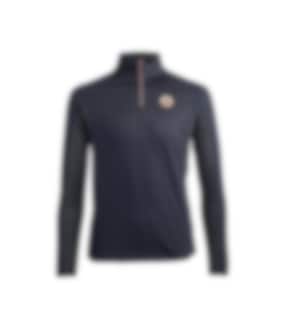 KLsuzy is a super comfortable riding shirt in a nice navy color for the junior rider. The riding shirt has 1/2 zipper and high collar. The riding shirt is made in a high quality, quick drying fabric that is breatchable.