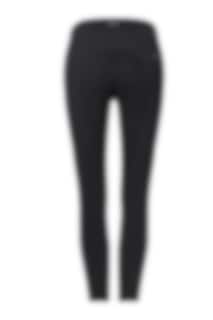 The breeches have slanted front pockets and fake back pockets with rhinestones as decoration, elastic leg ends.
