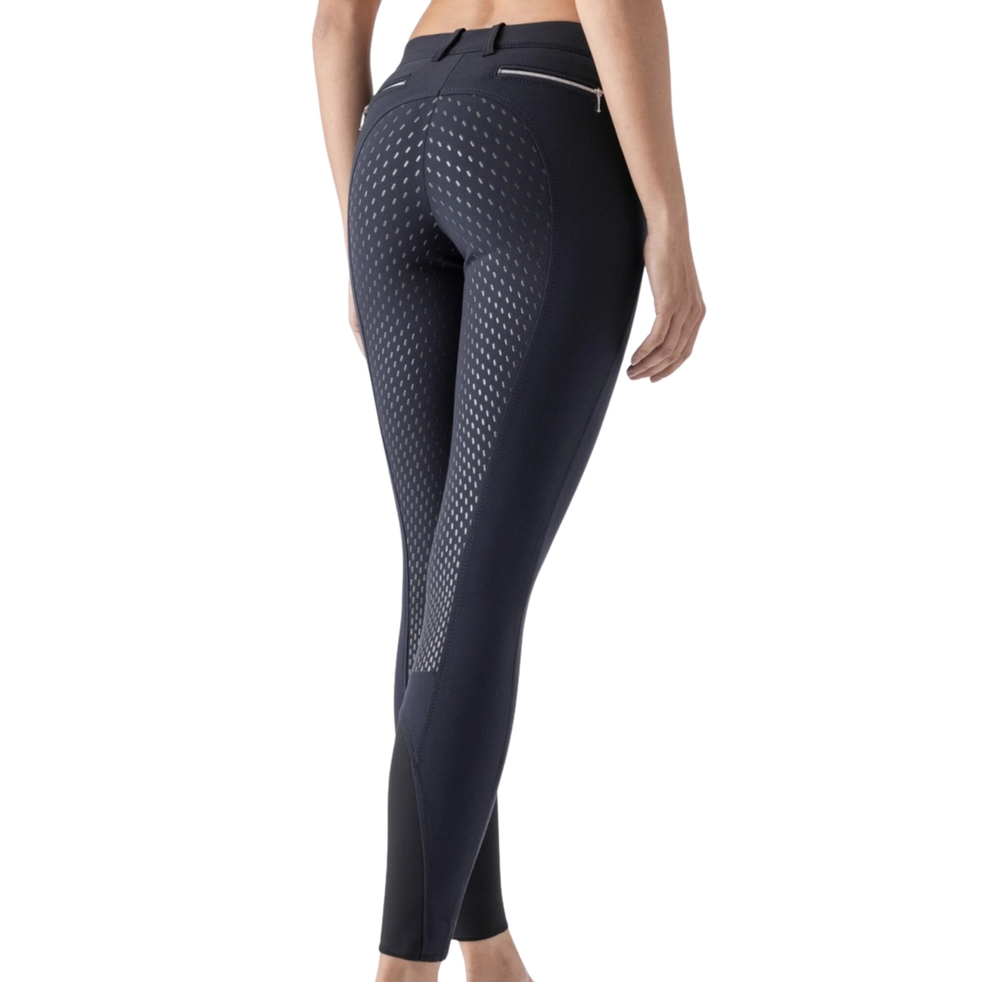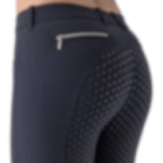 Equiline Cedar are full seat navy ladies’ riding breeches in a stretch cotton blend with X-Grip.