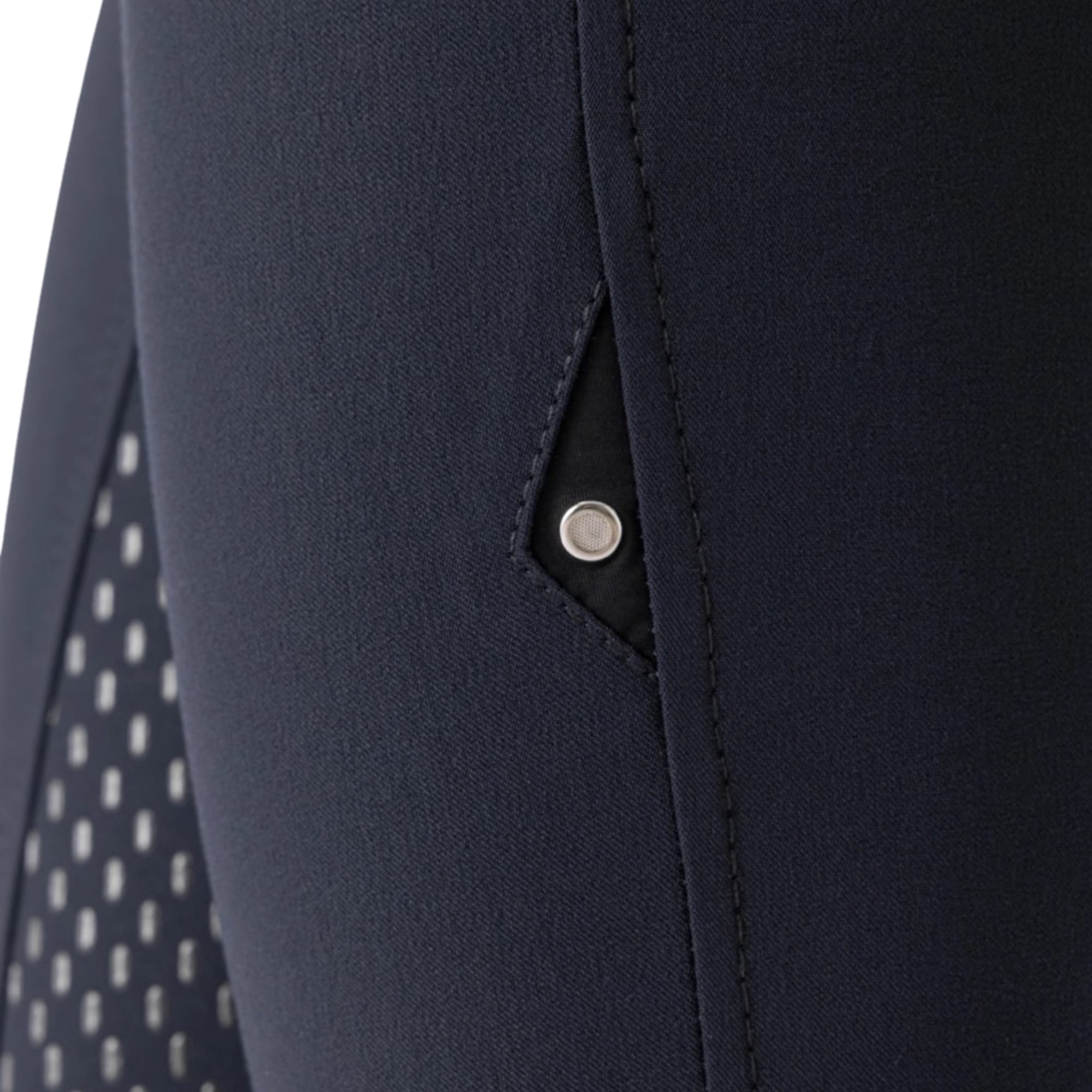 Elastic leg endings ensure a smooth fit inside riding boots without creating pressure. Two slanted front pockets and decorative zip pockets at the back complete the clean and balanced design.