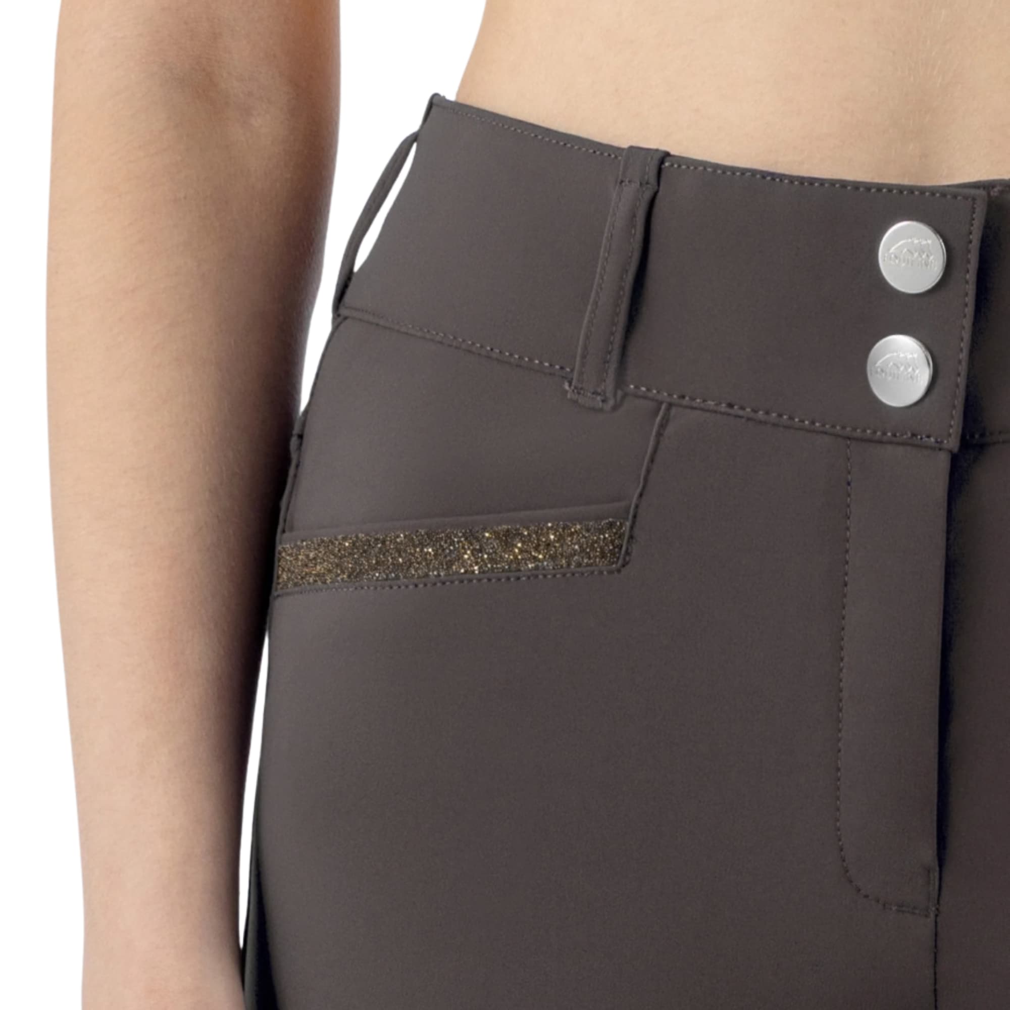Equiline Crystalef Breeches with a high waist, full grip seat, and crystal fabric details.