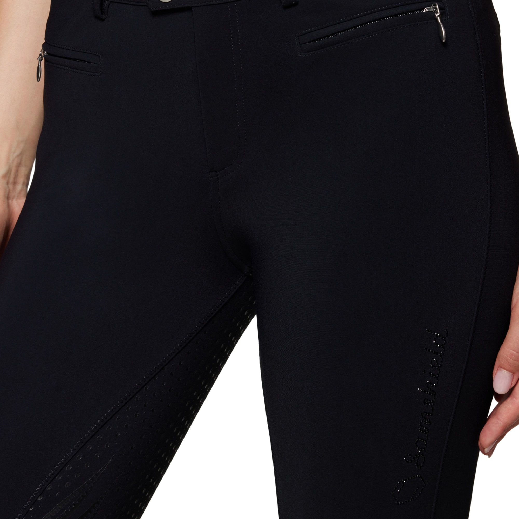 Black Samshield Diane women’s breeches in a flexible, stretch technical fabric, featuring elegant Swarovski crystals on the back pockets.