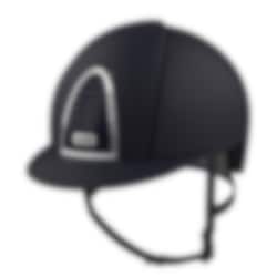 The riding helmet Cromo 2.0 Textile has a navy blue varnished matt shell, front, rear and visor. Chrome frame, navy blue grid, sub-grid and button, navy blue leather chinstrap. Cromo 2.0 has an innovative mechanical system that allows the rider to change the color and design on both the front and rear to adapt the helmet to his own taste and liking.
