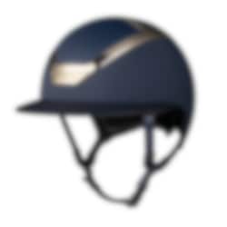 Classic matt riding helmet with sun visor, the combination of navy and gold gives a nice design with a luxury touch.