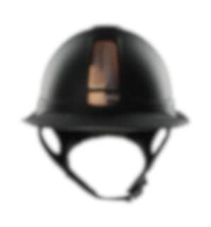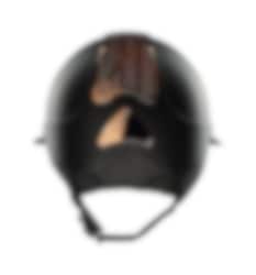 The helmet's black shell with a satin-like finish, combined with copper-colored details, creates a sophisticated impression.