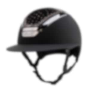 Matt riding helmet with sun visor, the top IN-OUT is designed with authentic Swarovski Crystals.