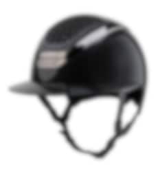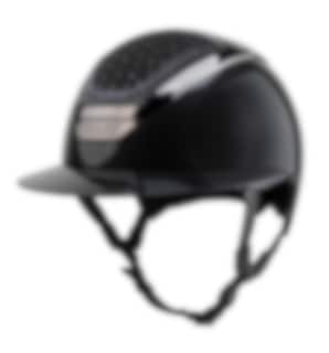 High gloss riding helmet with sun visor, the top IN-OUT is designed with authentic Swarovski Crystals.