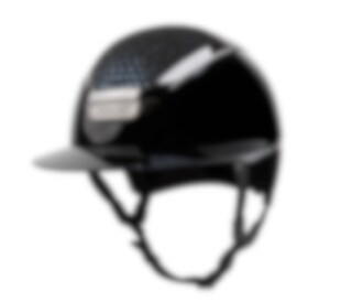 High gloss riding helmet with sun visor, the top Passage is designed with authentic Swarovski Crystals.
