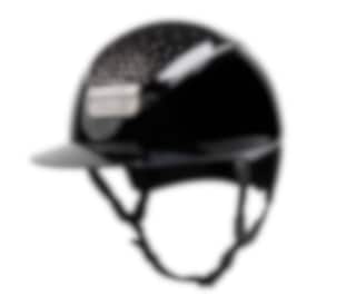 High gloss riding helmet with sun visor, the top Passage is designed with authentic Swarovski Crystals.