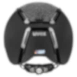 The Exxeed Flash riding helmet has more than 3000 original Swarovski® crystals and a glossy piano-like frame, which makes a real statement. Its unusual appearance includes uncompromising protection with its proven hard shell technology. This riding helmet has a satin cover in black or navy and is part of the Uvex premium collection. An incredibly glamorous riding helmet that really stands out!