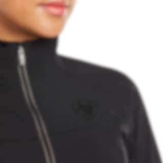This riding jacket is in softshell paired with high-stretch recycled polyester blend. The riding jacket is wind and water resistant which makes it perfect as a thinner jacket to use both in the stable and during training with the horse.