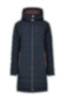 Ballybrophy is a warm and incredibly stylish down jacket in navy with brown details from Dubarry.