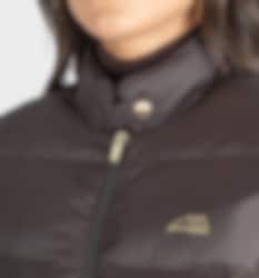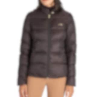 The Elannae is made in a beautiful brown color with discreet Equiline logos across the left chest and on the left shoulder. The jacket also has a tone-on-tone two-way zipper with stylish gold drawstrings and a gold button on the collar.