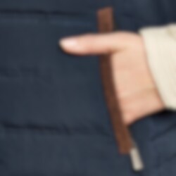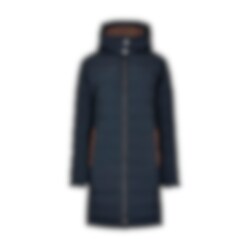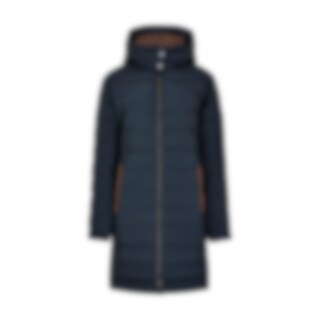 The coat features a durable two-layer polyester outer shell for protection against cold and light moisture. The removable hood offers flexibility for changing weather, while the soft faux suede lining in the collar, chin guard, and pocket trims adds both comfort and a luxurious touch. Knitted inner cuffs help retain warmth, and the practical two-way front zip provides extra freedom of movement.