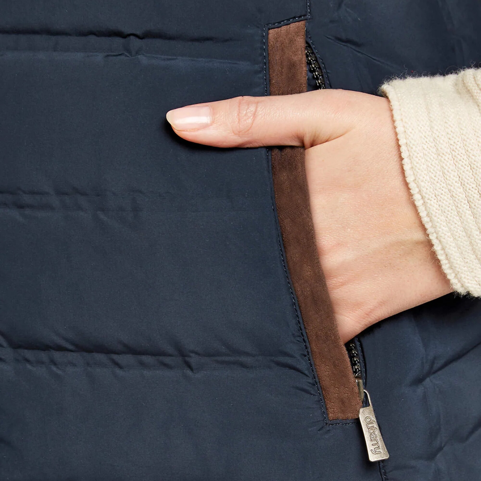 Dubarry Ballybrophy is an elegant and functional three-quarter length down coat that keeps you warm and comfortable during cold autumn and winter days. Filled with 90% ethically sourced down and 10% feathers, this coat is lightweight, soft, and insulating – perfect for the stable, everyday wear, or long dog walks.