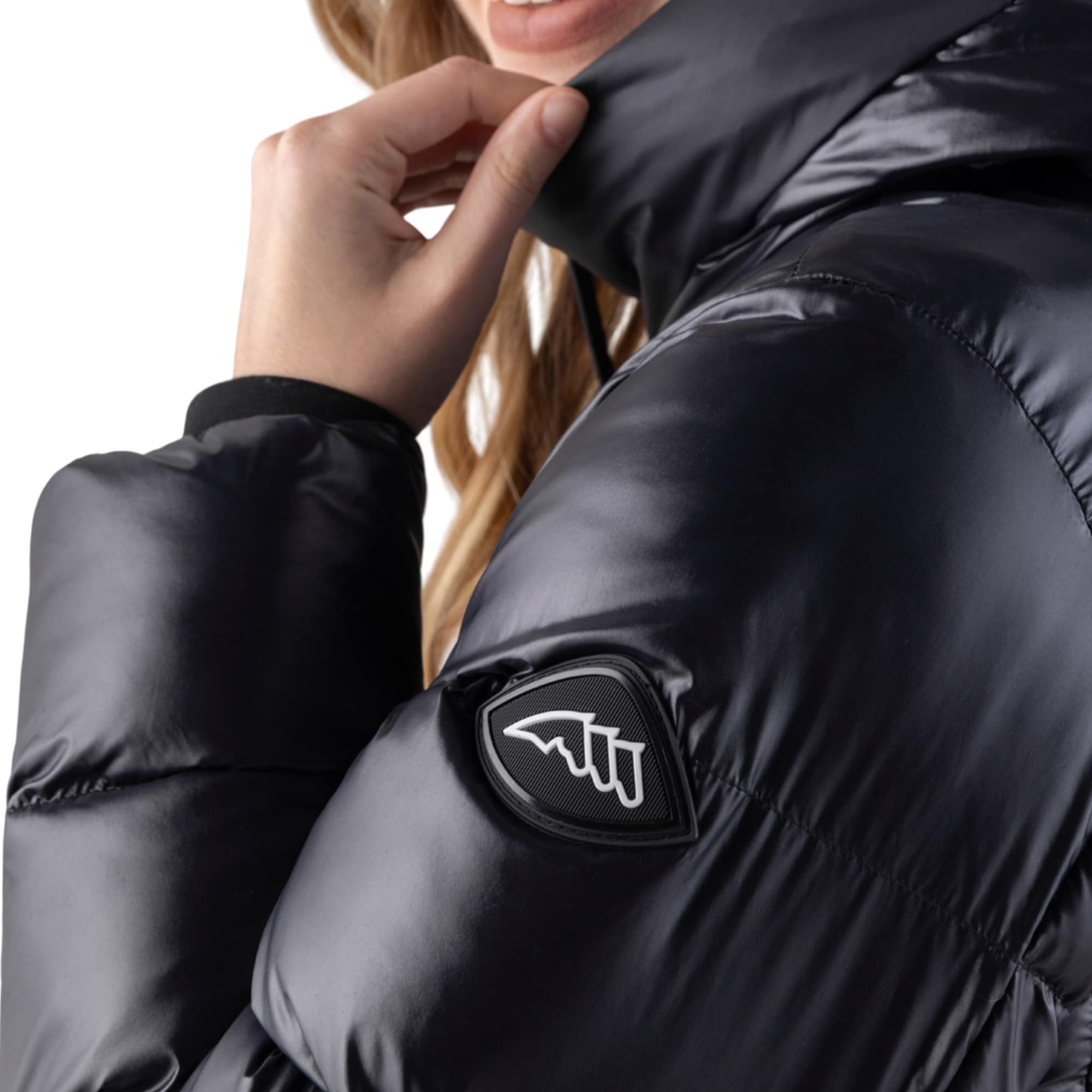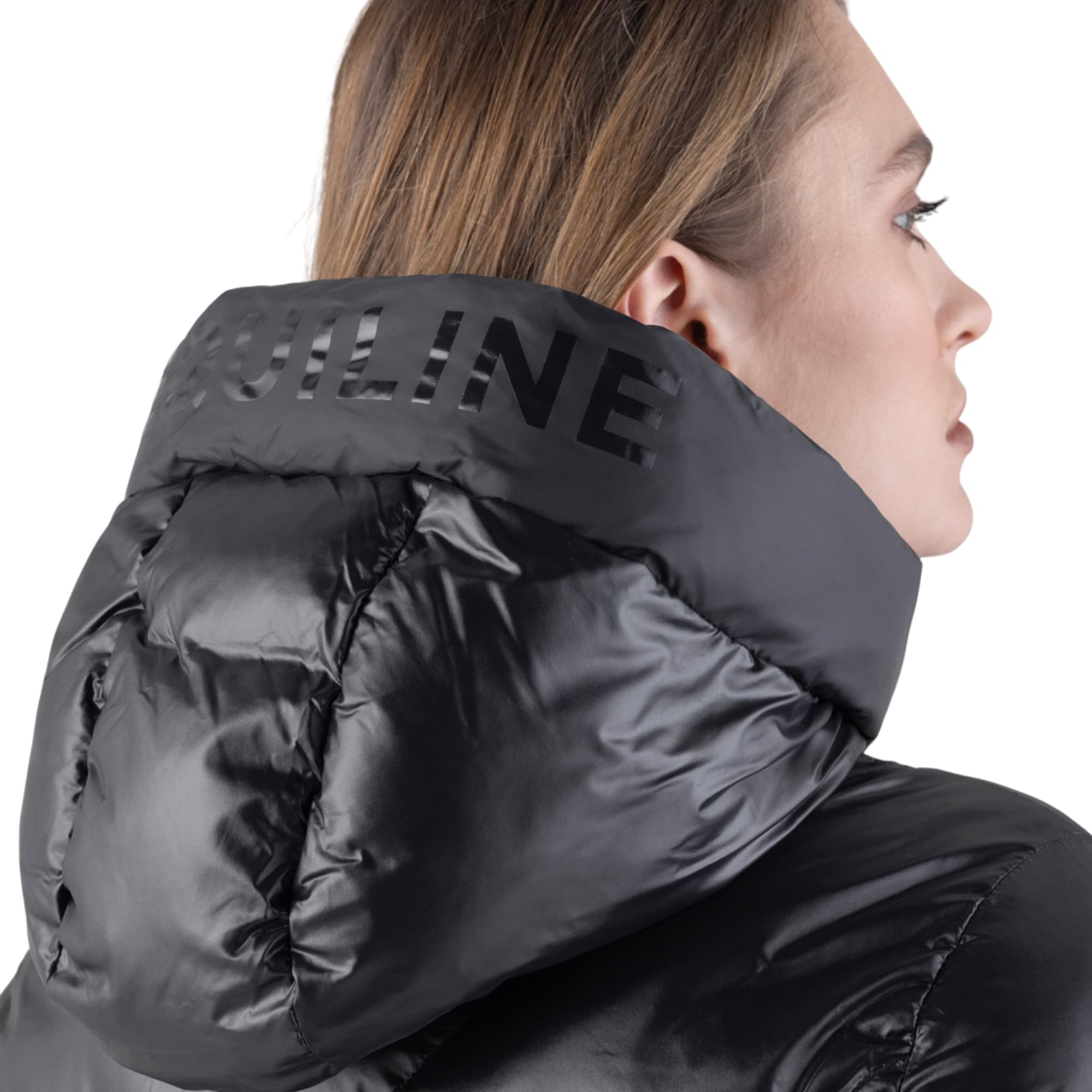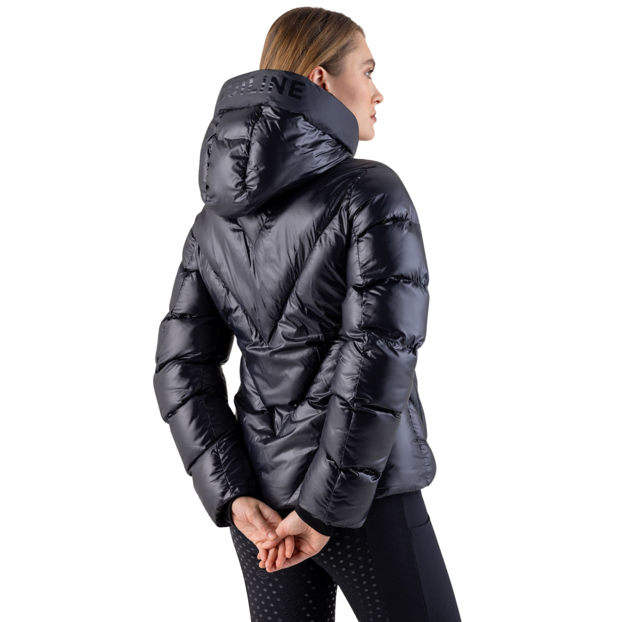 Equiline Coolbomb Glossy is a glossy, padded women’s jacket in black that combines comfort and functionality. The jacket keeps you warm on cold days and is suitable for both everyday wear and at the stable.