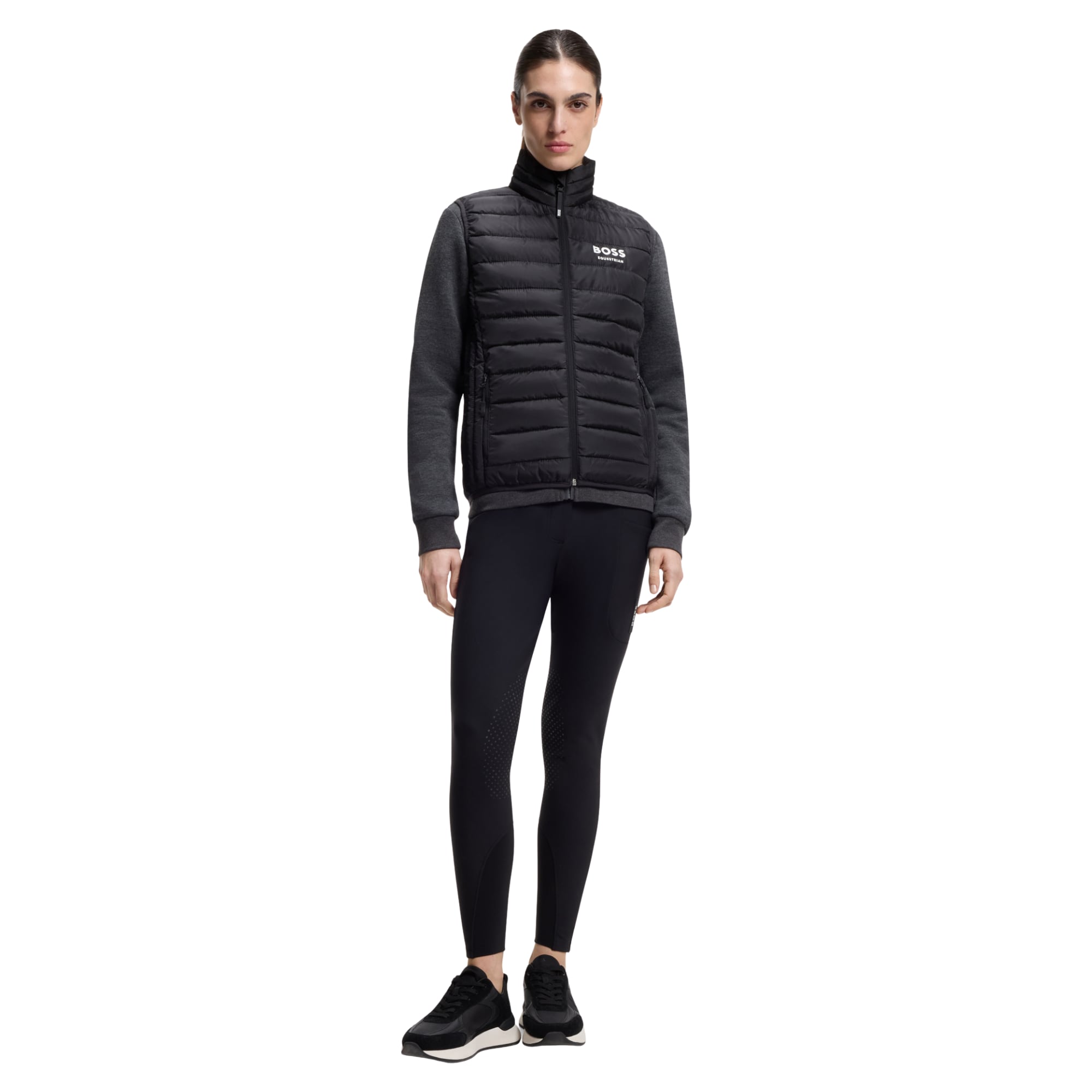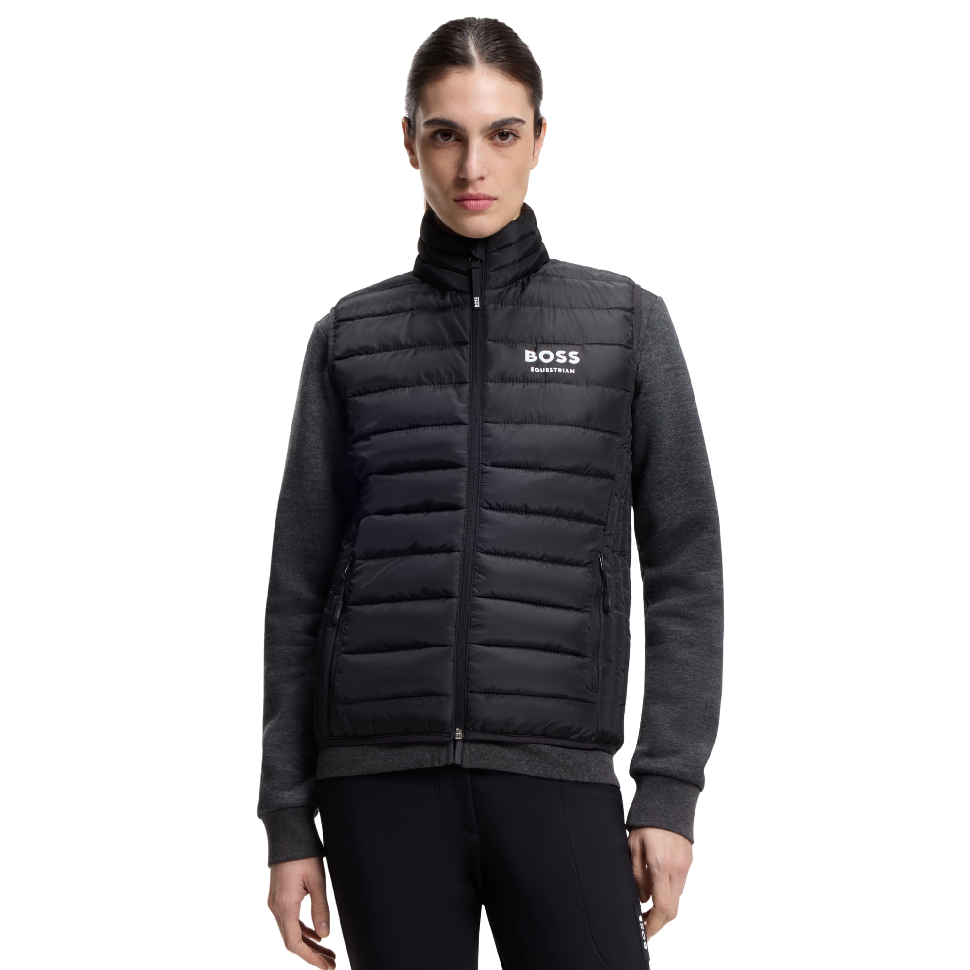The vest is equipped with practical zippered side pockets, an exclusive silicone signature zip puller with the BOSS logo, and a stylish printed Boss Equestrian logo on the chest.