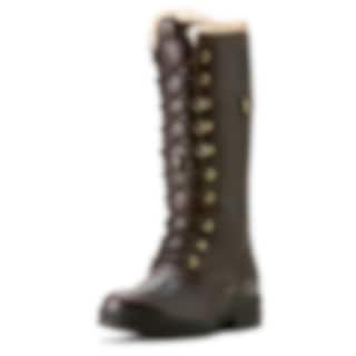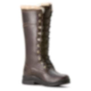 Ariat Wythburn is a waterproof stable boot in full-grain leather with a cosy Sherpa lining, available in a rich brown shade.