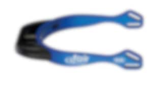 Blue fairRide spur with black top from Sprenger. fairRide is an innovative spurs with a wider area against the horse then the classic spur.