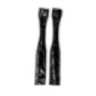 Well made and elegant Black spur protectors in Brushed croco leather from DeNiro Boot, which is also embossed on the spur protectors.