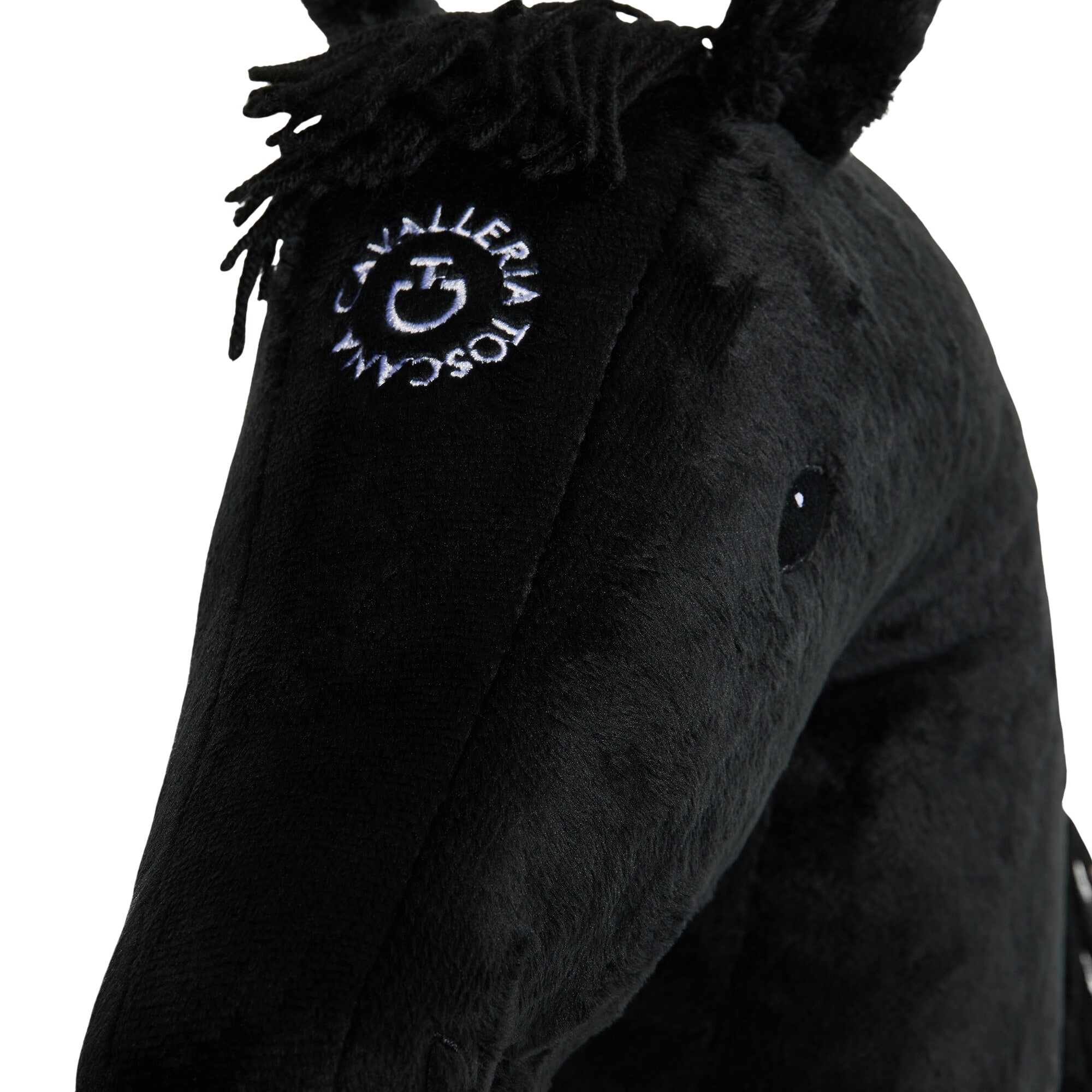 The hobby horse is made from soft black plush with a cord mane and features carefully embroidered details for a realistic look. It is adorned with the CT logo in a contrasting color and has finely embroidered eyes.