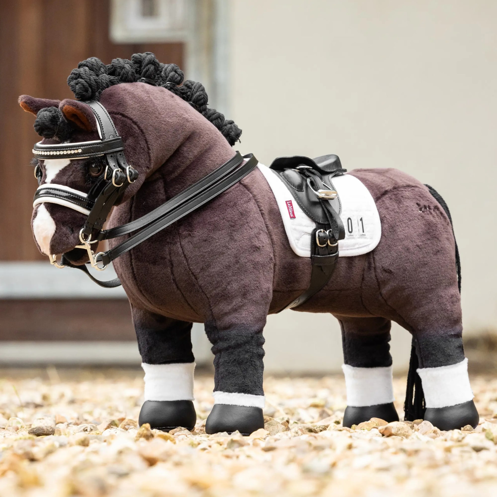 Get your LeMieux Toy Pony ready for the dressage arena with this elegant miniature dressage saddle in genuine leather!