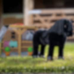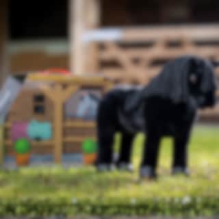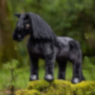 Skye is an elegant black dressage horse with a plaitable mane and tail, easily transported in her luxury horse box, which can be turned inside out to become a luxury stable. Her coat is incredibly soft, perfect for brushing and grooming.