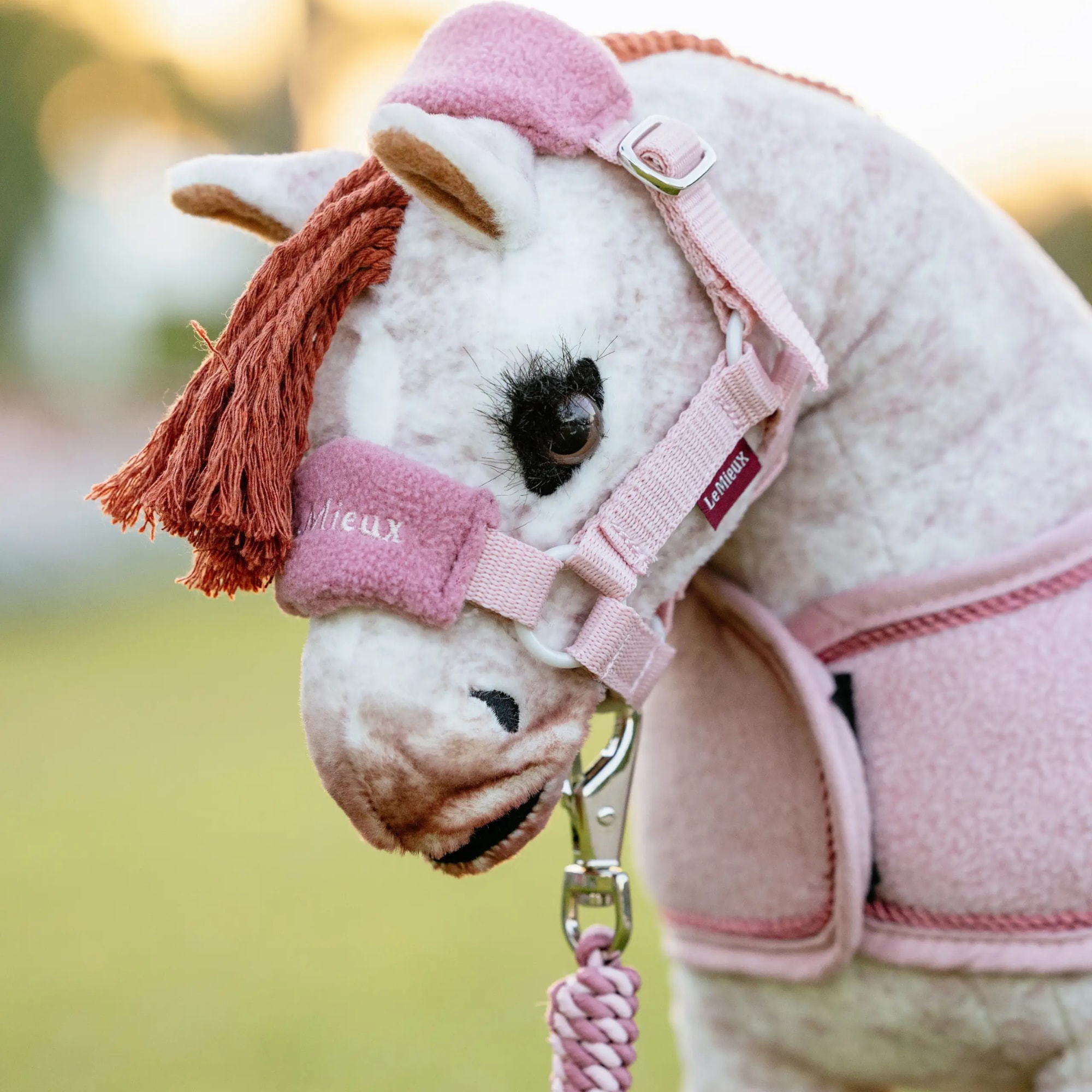 A miniature version of the iconic LeMieux Vogue Headcollar, designed with the same care and attention to detail as the original. The headcollar is fleece-padded over the nose and headpiece, features the embroidered LeMieux logo, an adjustable strap, and a matching leadrope.