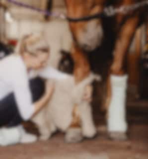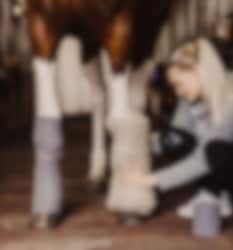 - Wrap the wool around a dry leg, all the way down to the fetlock.