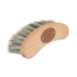 Ergonomic banana-shaped dandy brush from Borstiq Farm.