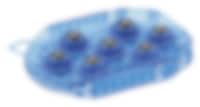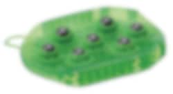 A reversible curry comb with rotational magnetic massage balls on one side and rubber bristles on the other.