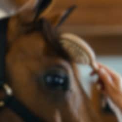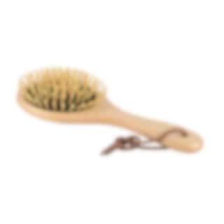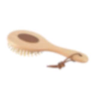This mane and tail brush is ideal for gently detangling knots while creating a soft, glossy finish on both mane and tail. The wooden bristles are mounted in a flexible rubber cushion, which reduces static electricity and makes grooming both comfortable and effective.