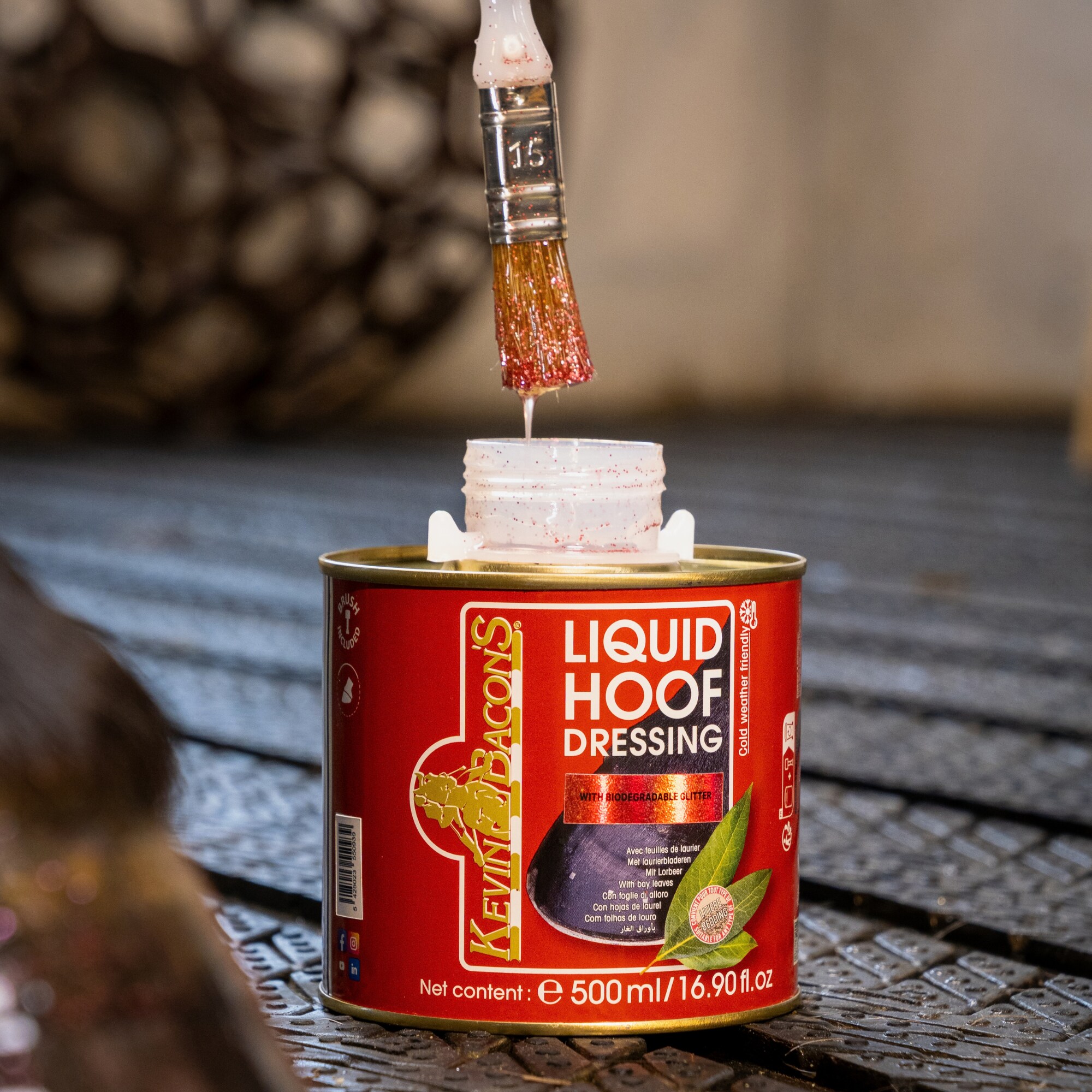 To keep hooves strong and elastic, products of the highest quality are essential. Kevin Bacon’s hoof oil penetrates deeply into the hoof wall, nourishes the hoof and helps prevent dryness, while protecting against moisture and supporting healthy horn growth. The result is stronger, more balanced hooves with a naturally healthy appearance.