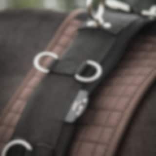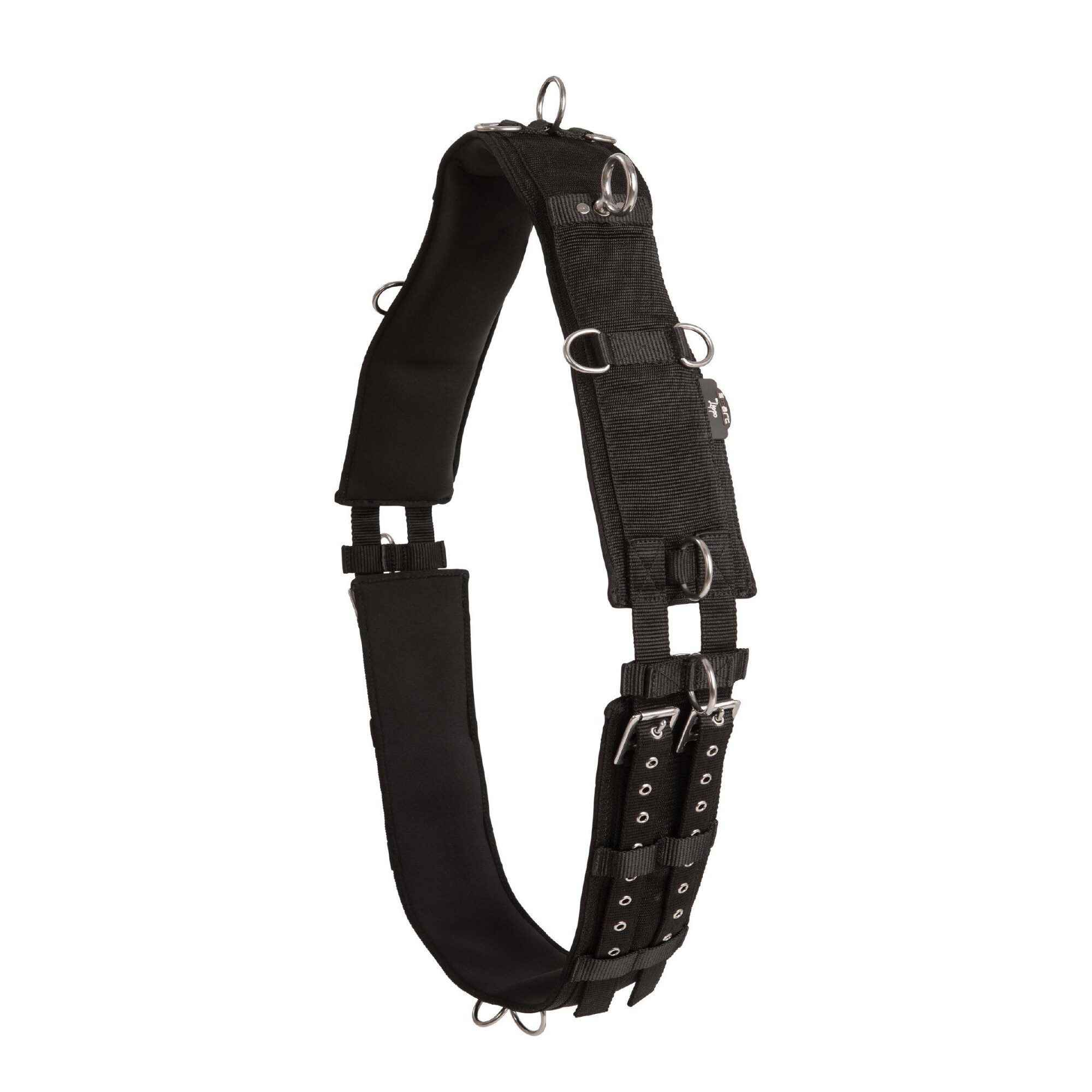 Lippo Lunging and Groundwork Girth in synthetic black is an easy-care and flexible girth designed for both lunging and long reining. It features multiple stainless-steel rings and a soft neoprene lining that provides excellent comfort and allows easy adjustment for various types of groundwork. A durable and practical choice for everyday training.